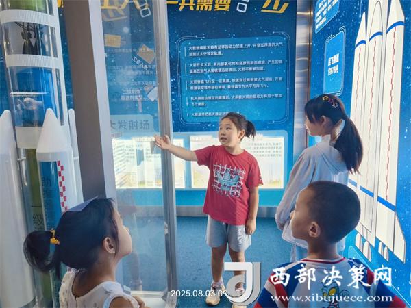 洋县科技馆通过资源联动、年龄分层、实践赋能的创新模式,让科普从单向传播转向双向成长。“小小讲解员”:9名小学员经科技辅导员系统培训,累计服务观众900余人次。“巧手塑天工”:面向7-10岁儿童的小班制航天手工课,将抽象宇宙知识转化为可触摸的实践载体,孩子们在组装、调试、改进中培养工程思维。“筑梦太空”:联合洋县图书馆推出航天主题讲座,开展《火箭结构》《天和空间站》《月壤与火星尘》等趣味课程25场次。科技辅导员巧用框架图、科普动画、互动问答等形式,让深奥原理“活”起来。暑期活动点燃了孩子们对科学的无限热情,累计接待各类游客8500人次。
