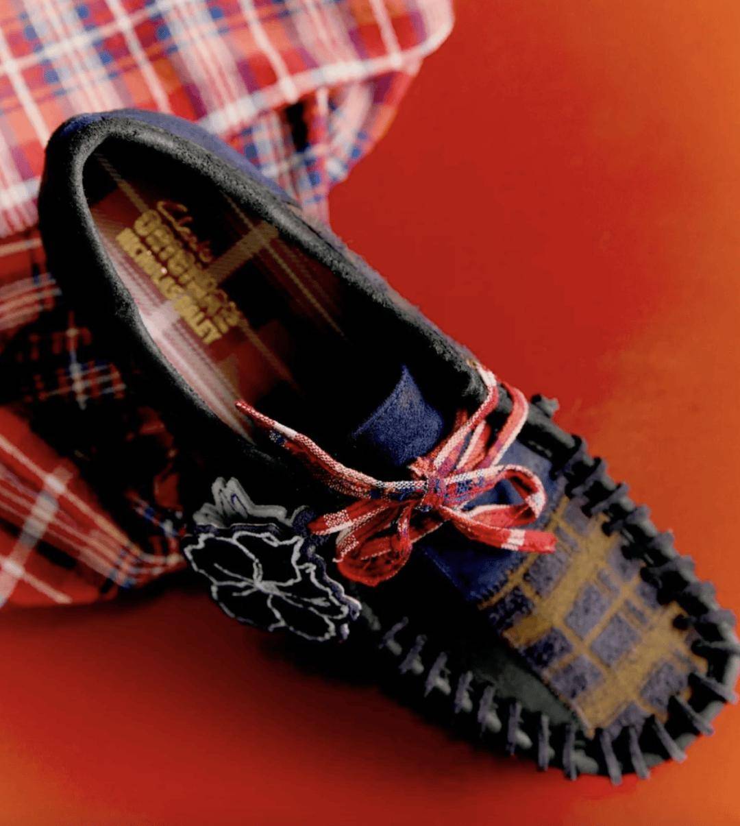 英国鞋履品牌Clarks近日携手伦敦设计师Nicholas Daley,为庆祝品牌200周年推出联名合作系列。该系列将于周五正式发布,通过对经典Wallabee鞋型的重新诠释,融入了设计师跨文化传承的大西洋美学灵感。毕业于中央圣马丁学院的戴利以其精湛的英国工艺水准,从牙买加-苏格兰双重血统中汲取灵感,为1968年问世的莫卡辛风格Wallabee鞋款注入全新灵魂。联名款采用蓝红色格纹拼接设计,融合光滑麂皮、蜡感皮革与长绒麂皮三种材质,并在鞋面及后跟处饰以特色皮革缝线细节。除格纹织物鞋带外,更配有可替换纯色扁鞋带,鞋面点缀的Clarks Originals x Nicholas Daley联名花卉饰扣成为画龙点睛之笔。