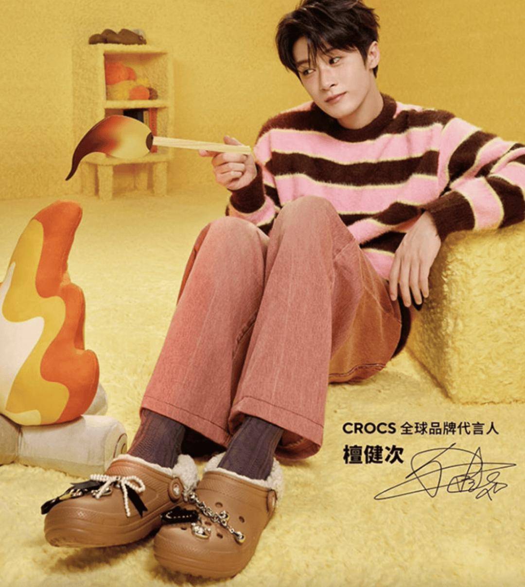 Crocs 推出全新冬季系列鞋款,并携手全球品牌代言人檀健次,共同开启一“健”暖冬旅程。在最新释出的主视觉海报中,全球品牌代言人檀健次分别演绎了两个极具风格的冬日幻想场景:在冰雪音乐世界中,他身穿浅色衬衫与工装裤,脚踩黑色复古暖棉小鲸鱼洞洞鞋,该鞋款基于小鲸鱼鞋型厚底的设计,凸显修长的腿部比例;而在温暖的居家空间里,檀健次身着暖色毛衣与微喇牛仔裤,脚穿羊茸洞洞鞋搭配毛绒袜,慵懒倚坐,尽显自在松弛的居家状态。鞋面点缀蝴蝶结与爱心智必星鞋花,温柔中暗藏金属摇滚巧思。